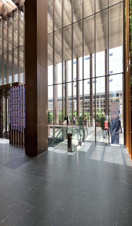 2.高效垂直运输:安防门禁与迅达电梯PORT系统联动,首层至地下商街设置扶梯,4部1600KG转换电梯。