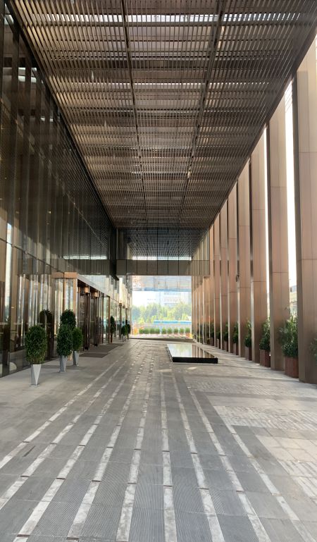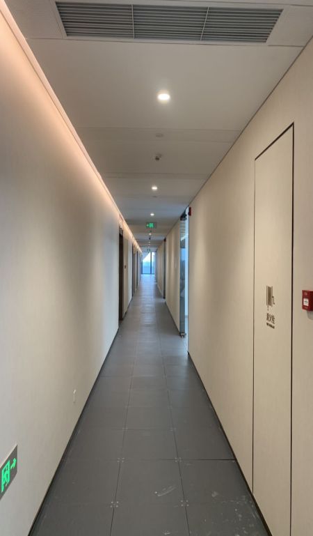 交付状态:吊顶、白墙、架空地板、幕墙内电动遮阳百叶安装完毕,公共区域精装修